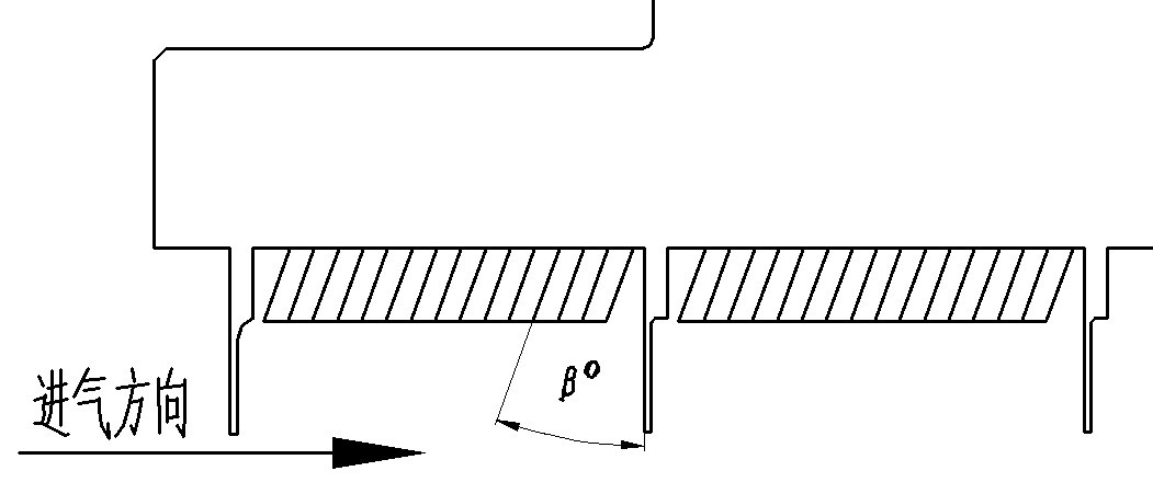 在普通蜂窩汽封的外形結(jié)構(gòu)基礎(chǔ)上將其蜂窩網(wǎng)格向氣流進(jìn)汽方向傾斜β角度,這項(xiàng)技術(shù)改進(jìn)在保持原普通蜂窩汽封優(yōu)秀的密封性能基礎(chǔ)上又增加了新的密封的特性。
